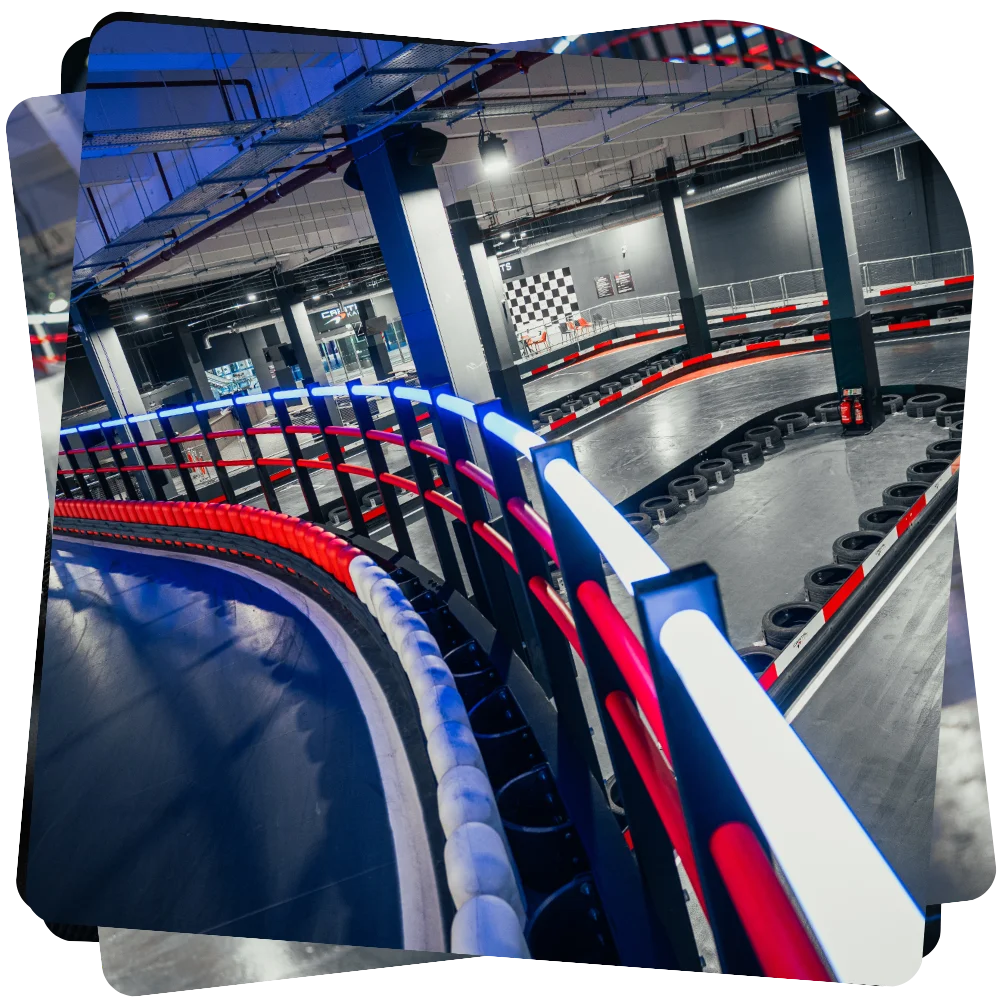 Our track is the finest and fastest indoor circuit in the UK, built with a multi level layout that allows speeds of more than 45 mph.