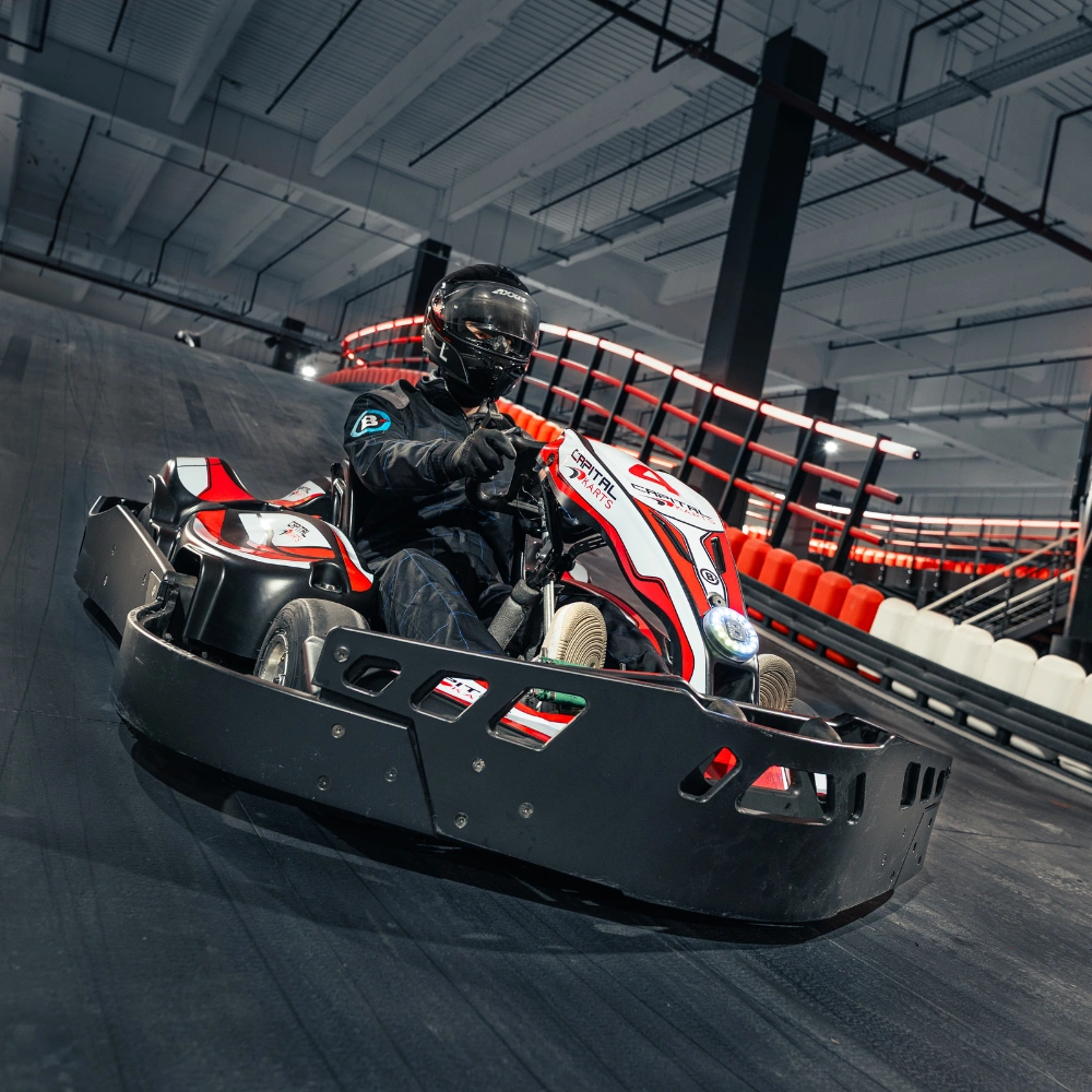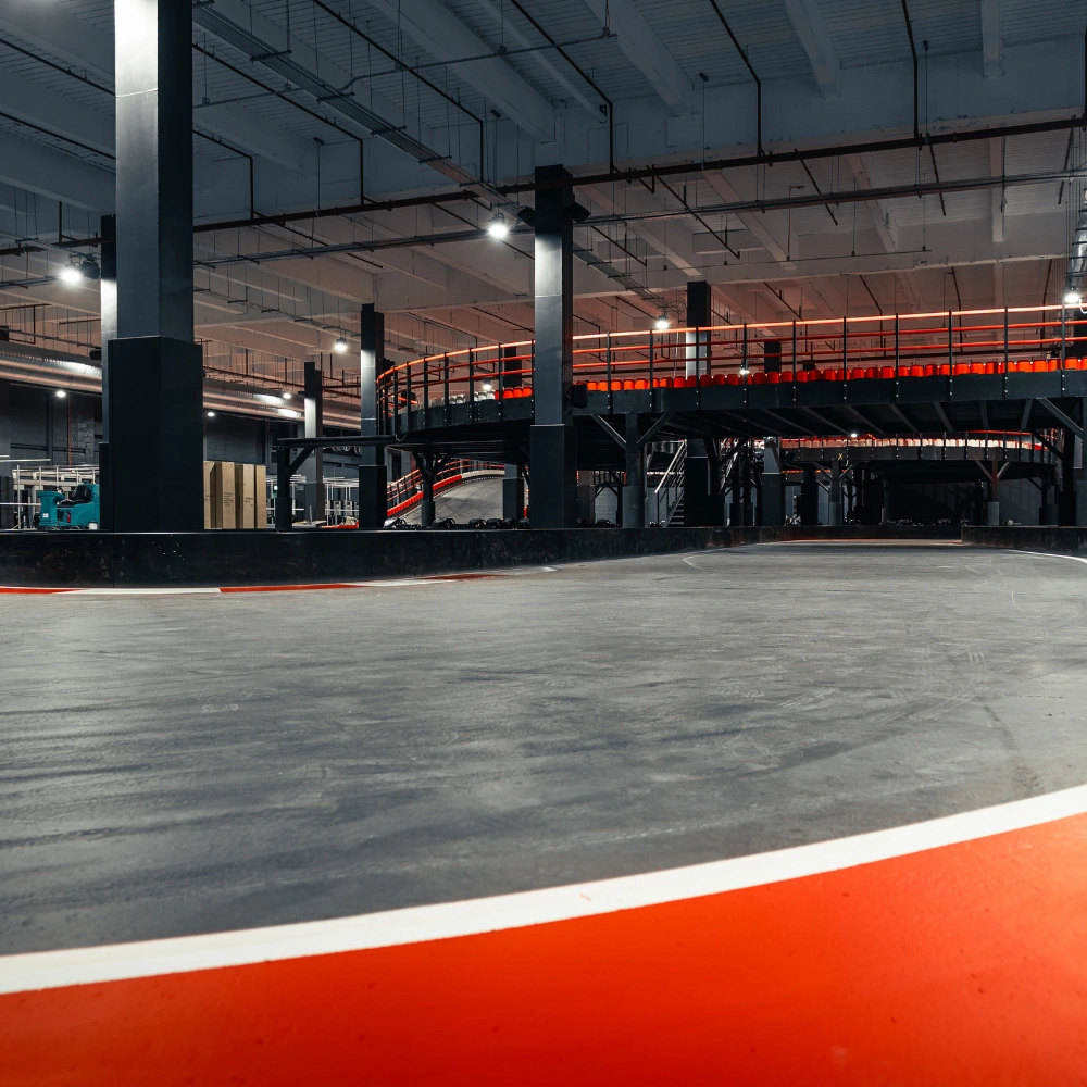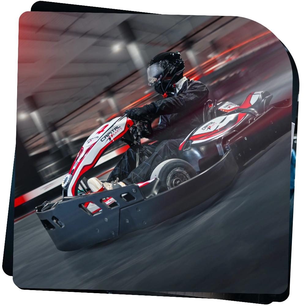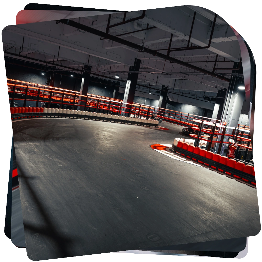 Our track is the finest and fastest indoor circuit in the UK, built with a multi level layout that allows speeds of more than 45 mph.
