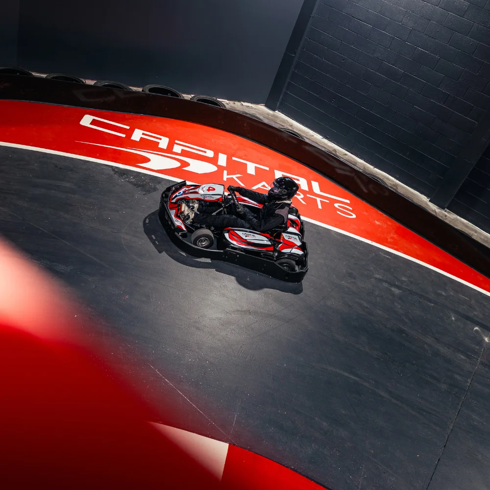 Our track is our pride and joy. Stretching over 600 metres with multiple levels and fast sweeping corners, it’s engineered to deliver an incredible racing experience. This is your moment to feel the speed